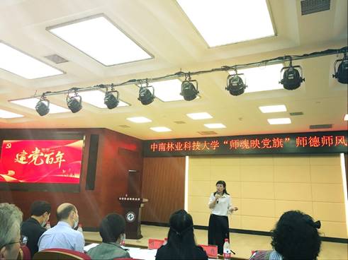 “……他一生践行的“实事求是,勇于担当,甘于奉献”的作风和 “身教重于言教、德育为先、人师与经师并重”等教育理念,是中华民族几千年来形成的传统美德与处于时代高峰的革命党人的共产主义道德的凝结,是师魂之所在!……我们林业教育工作者需秉承“求是求新,树木树人”的初心,践行好我们的历史使命!……人是行走的树,树是站立的人。树从不辜负春风普度,从不浪费夏日阳光,从不参与秋收的喧闹,从不妥协冰雪的侵蚀,而老师,从不辜负国家和人民的期望!”。曹丹老师的精彩演讲,获得了在场观众的热烈掌声。
