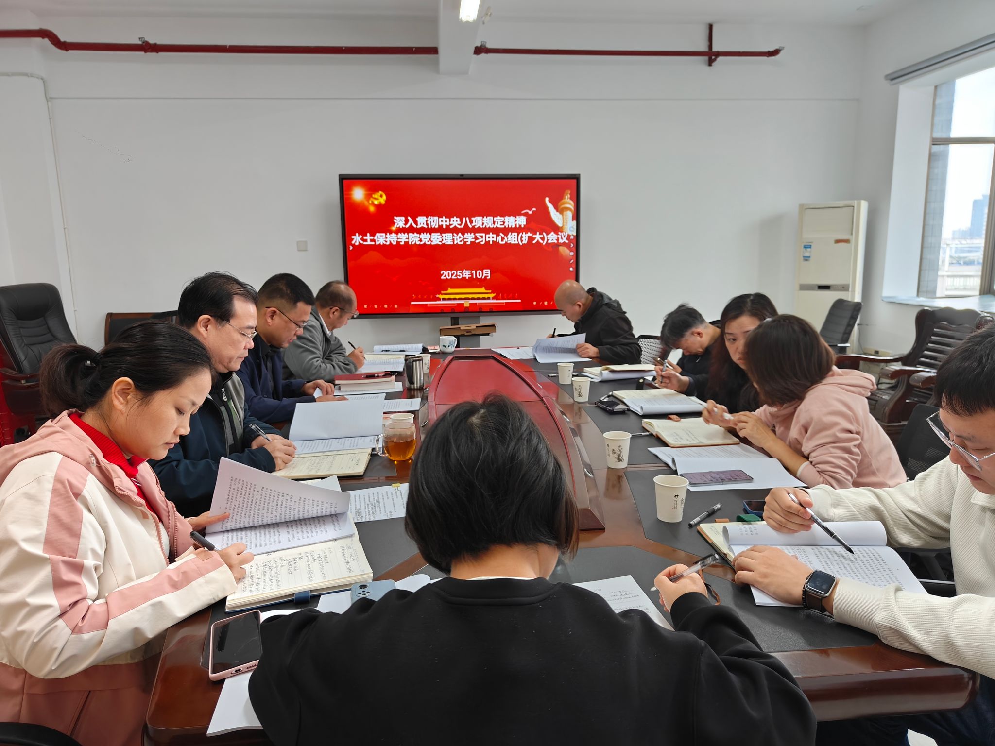 2025 年 6 月 20 日下午 3:30,水土保持学院党委理论学习中心组专题(扩大)会议在学院会议室召开。旁听巡听工作组领导、学院党委委员、系(中心)主任、各党支部书记参加。会议由学院党委书记罗忠主持。