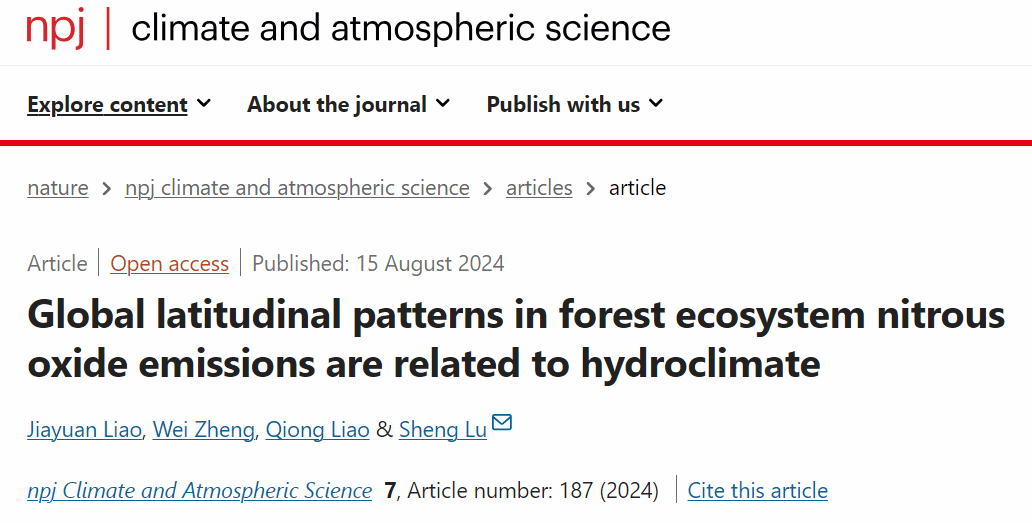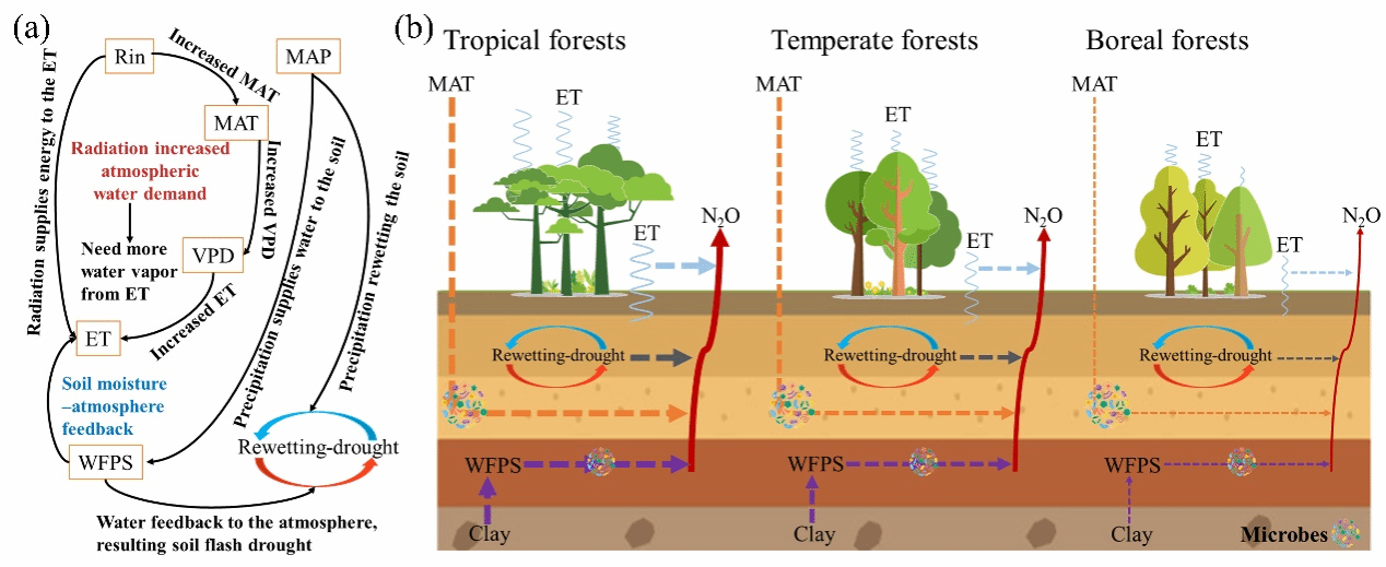 水土保持与荒漠化防治研究团队从土壤,水文气候角度揭示全球森林生态系统氧化亚氮排放的纬度格局