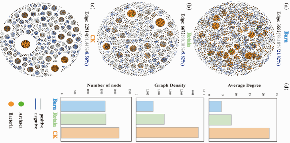 本研究首次利用共现性网络分析揭示桉树人工林替代原生植被以及焚烧采伐剩余物5年后林地微生物的共存模式并且利用结构方程模型探究环境因子是怎样通过古菌群落直接和间接影响细菌群落的αβ多样性,而细菌群落对古菌群落没有直接的影响但是环境因子通过细菌群落的介导对古菌群落有着显著的间接影响。整体而言,环境因子对古菌群落的影响显著高于细菌群落。从长远来看,在人工林经营过程中保留采伐剩余物、林下保护和减少土壤干扰有助于尾叶桉人工林土壤古菌和细菌群落多样性的恢复。这些研究结果可为我国人工林的经营管理策略的制订与修订提供科技支撑