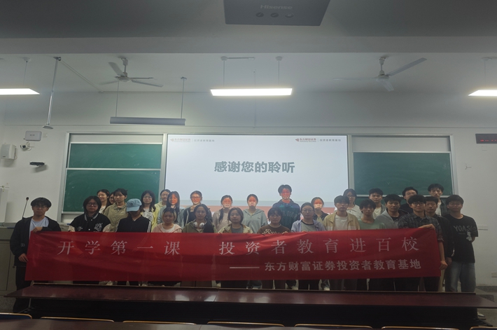 活动尾声,同学们手持红色横幅,横幅上醒目的“开学第一课 投资者教育进百校”字样,不仅点明了本次活动主题,更象征着投资者教育在校园播撒下的种子。这张充满活力的合影,定格了此次投资者教育活动的难忘瞬间,也展现了同学们积极参与、共同学习的良好精神风貌。