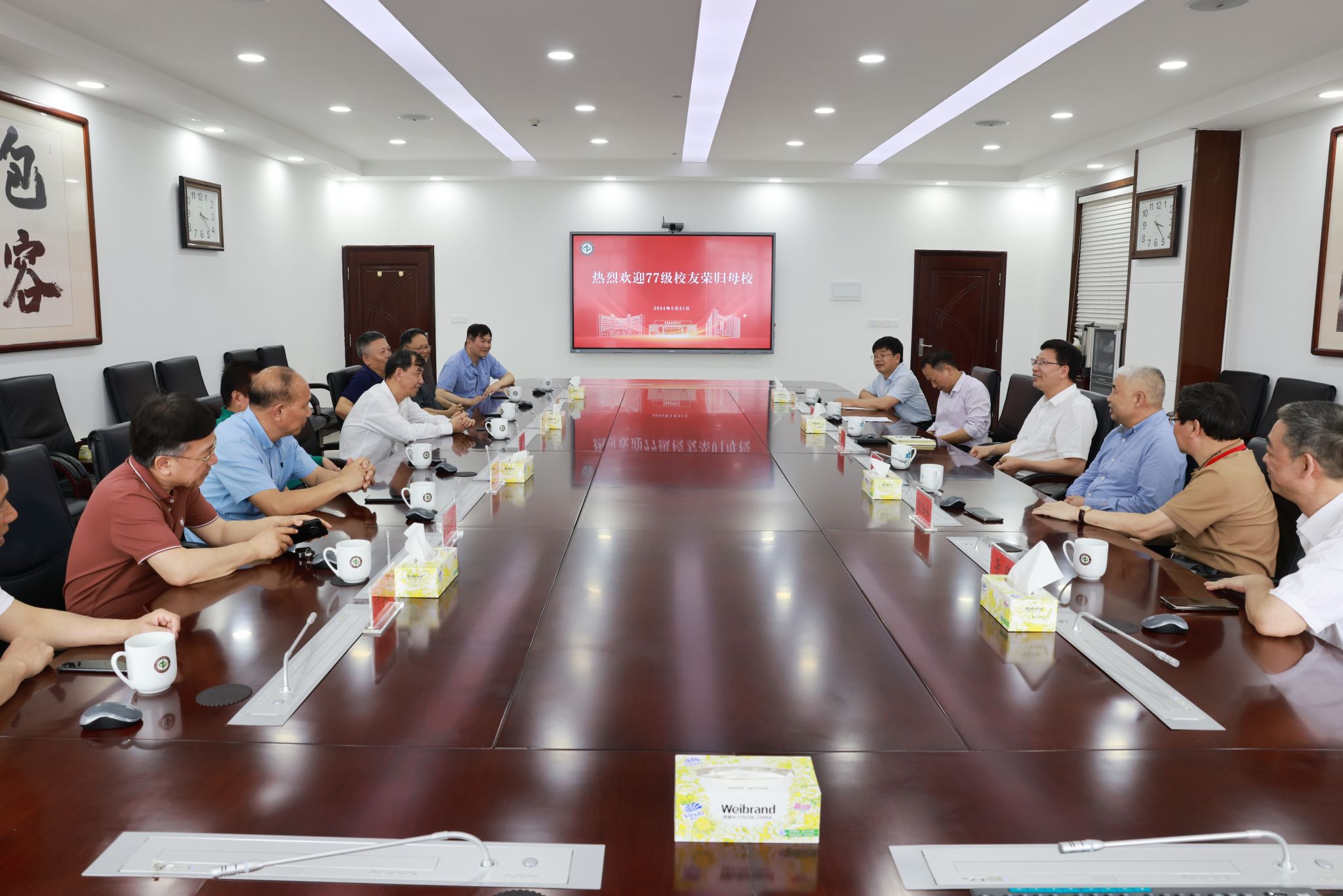 吴义强代表学校对此次回访母校的黄喜佳、谭天泳、彭长清、孙明、谭一凡、方丹阳、叶俊超、谌小勇等校友表示热烈欢迎。他指出,77级林学专业校友是国家恢复高考之后我校招收的首届大学生,毕业后在各自岗位都做出了很好成绩,为学校赢得了社会声誉,他对校友们持续关心和支持母校发展表示衷心感谢。他和校友们一起重温了学校在溆浦大江口艰苦卓越的办学历程,表示将秉承老一辈中南林人艰苦奋斗、勤俭办学、勇攀高峰的精神,在广大校友的关心支持下,团结带领全校师生员工,奋力谱写学校高质量发展新篇章。